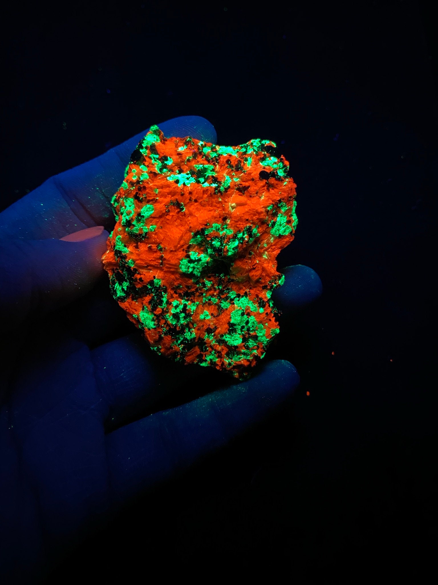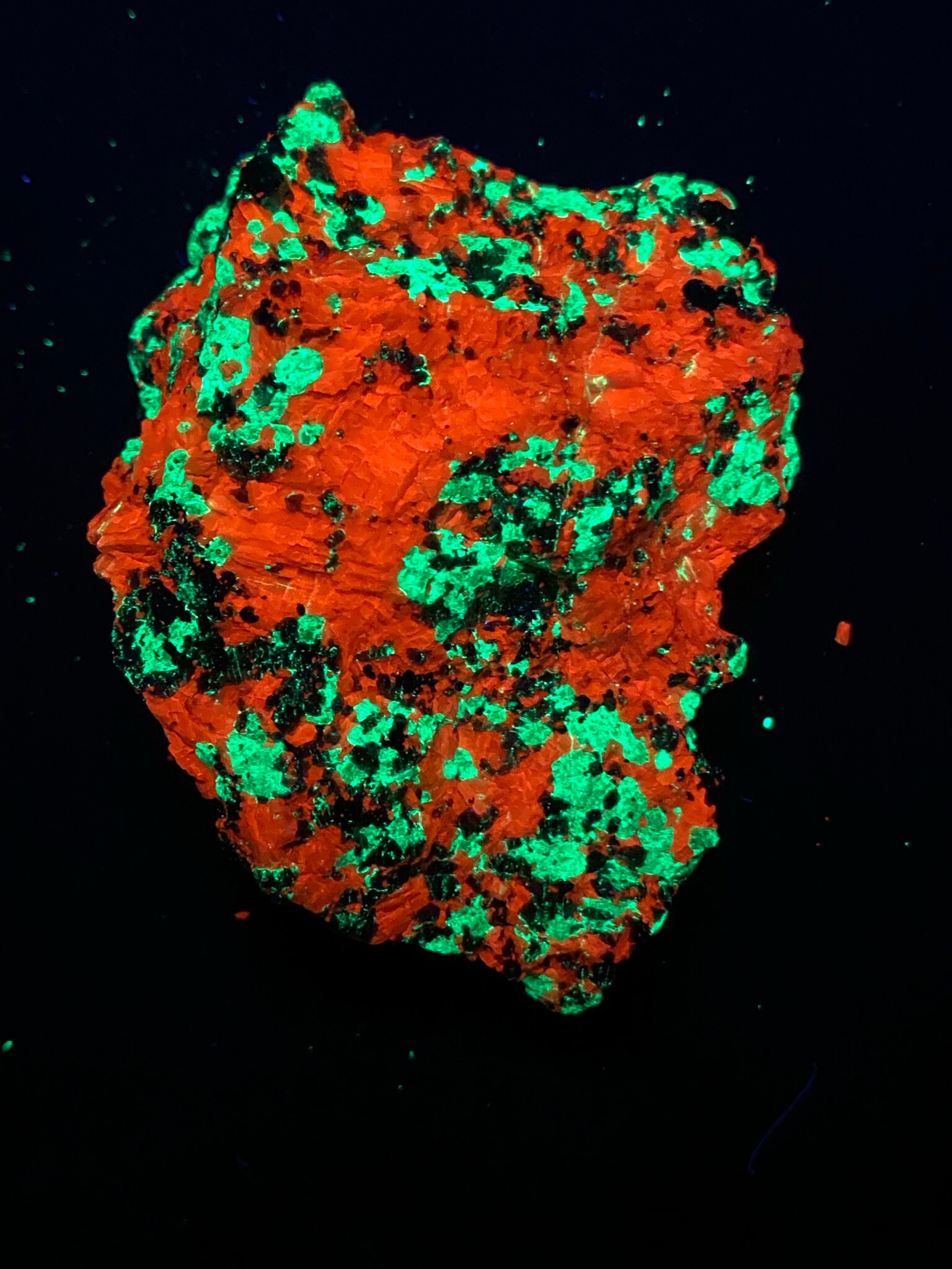 This specimen was photographed using a 36 watt shortwave ultraviolet lamp. The pictures have not been retouched.