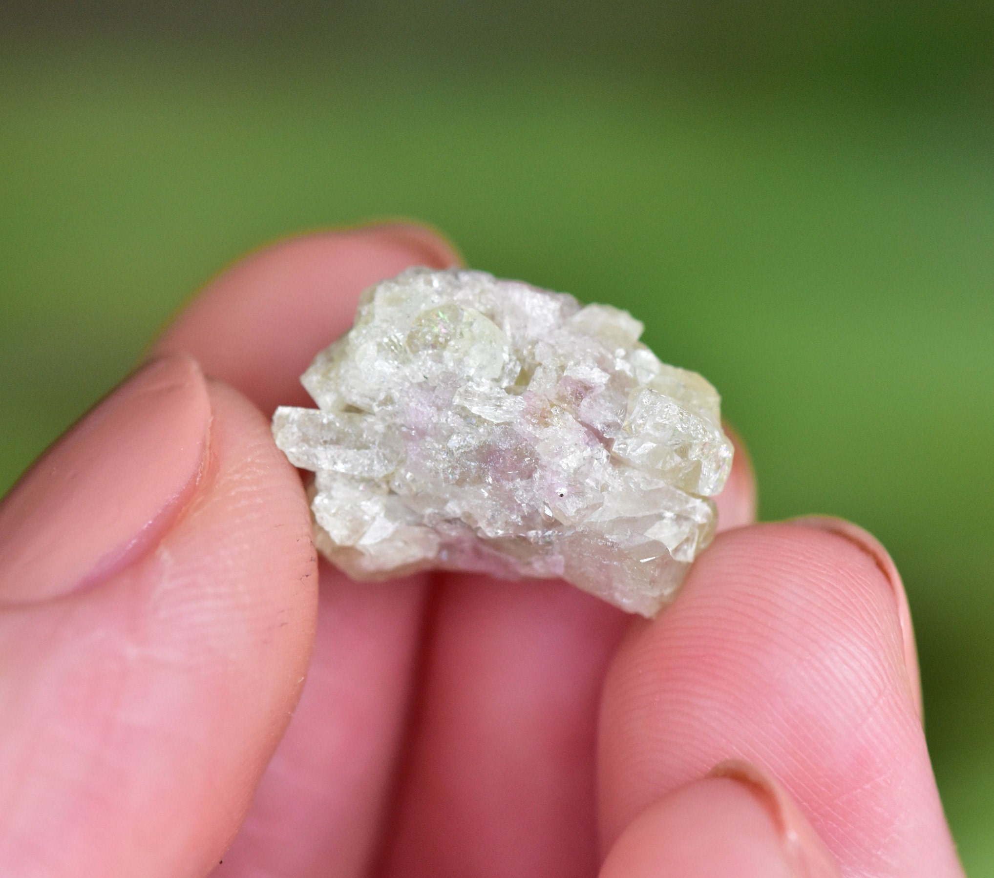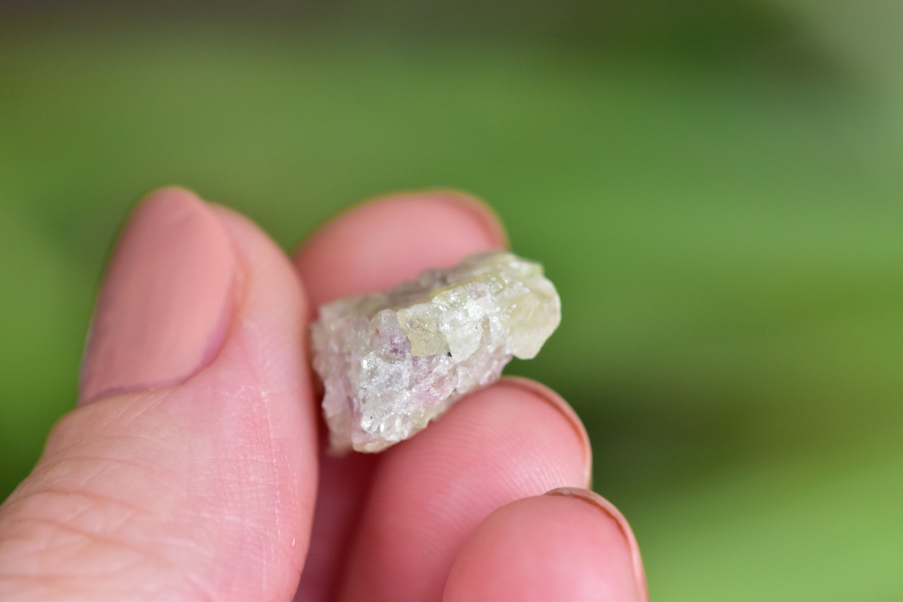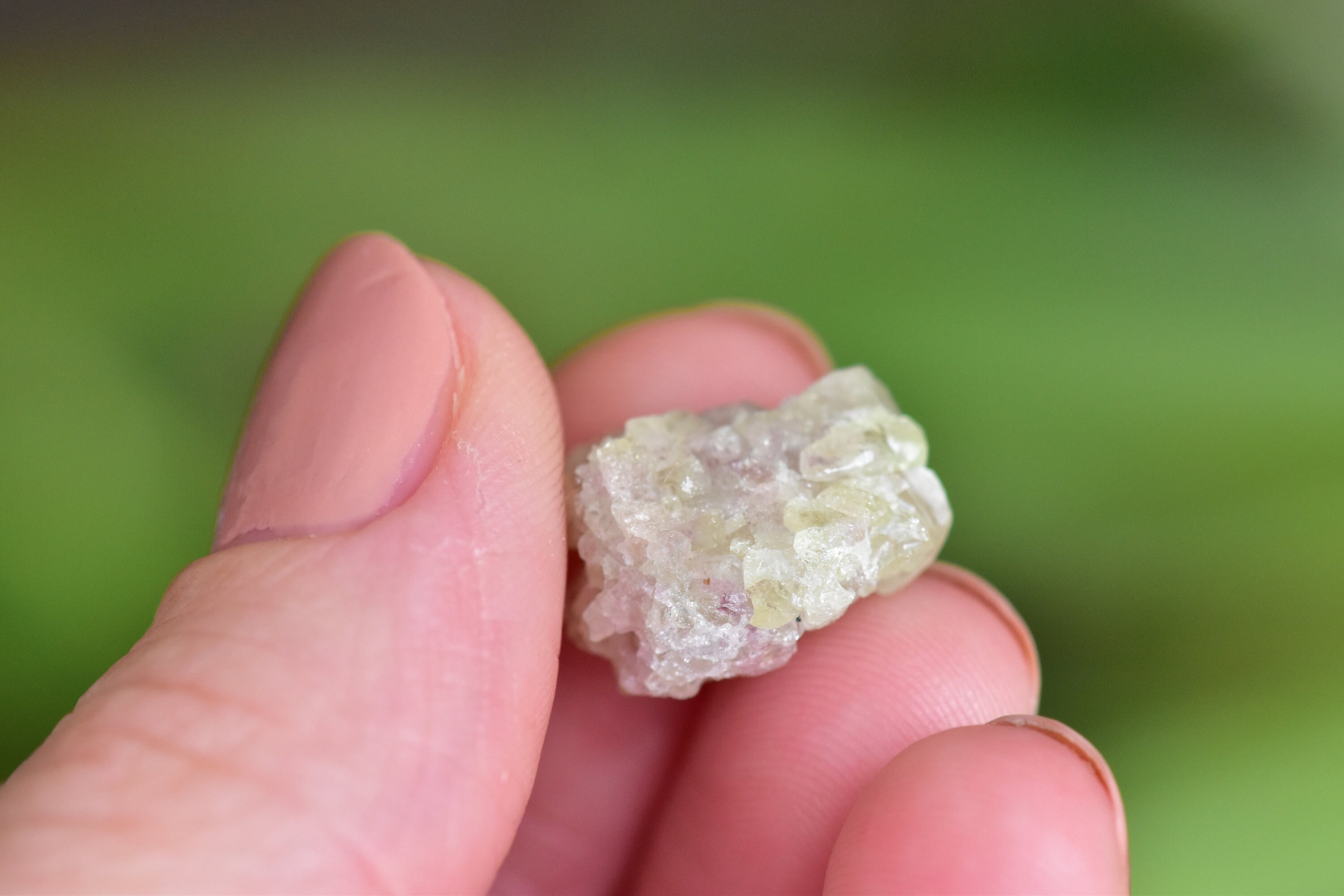 This is a cute tiny vesuvianite (also known as idocrase) crystal cluster. It's not very crystallized but it has a nice pale green and pale purple color.