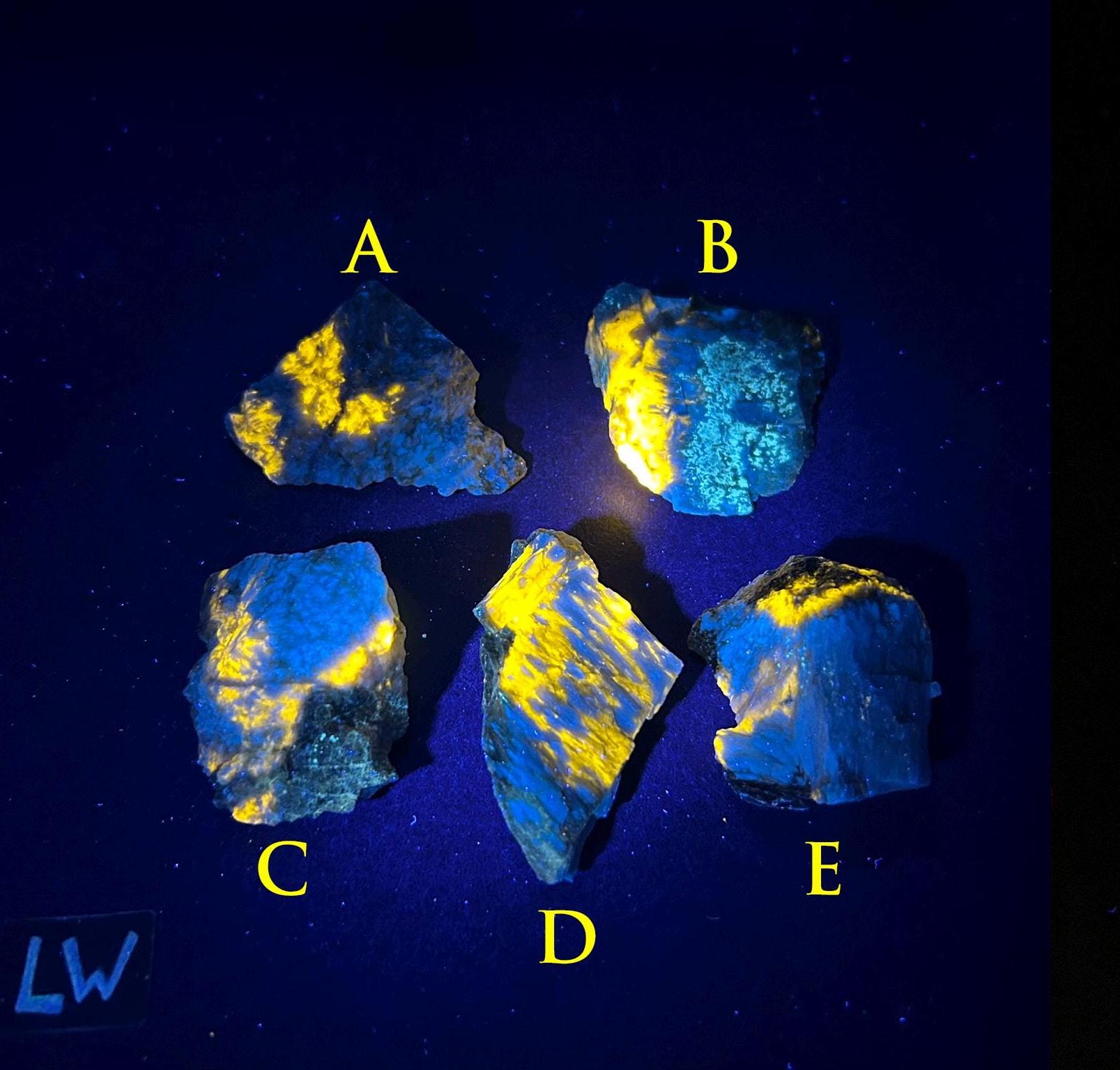 If your UV light isn’t as strong as the ones we used for photography, the fluorescence may appear dimmer or slightly different. Brightness and color intensity depend on the wattage and quality of your UV light.