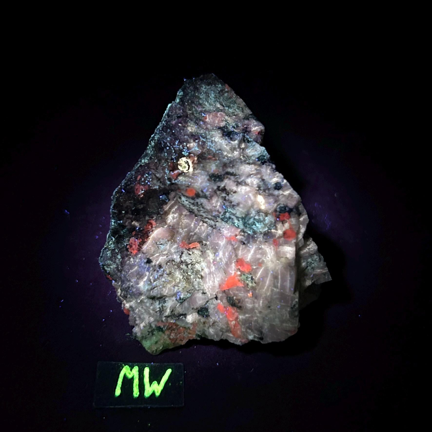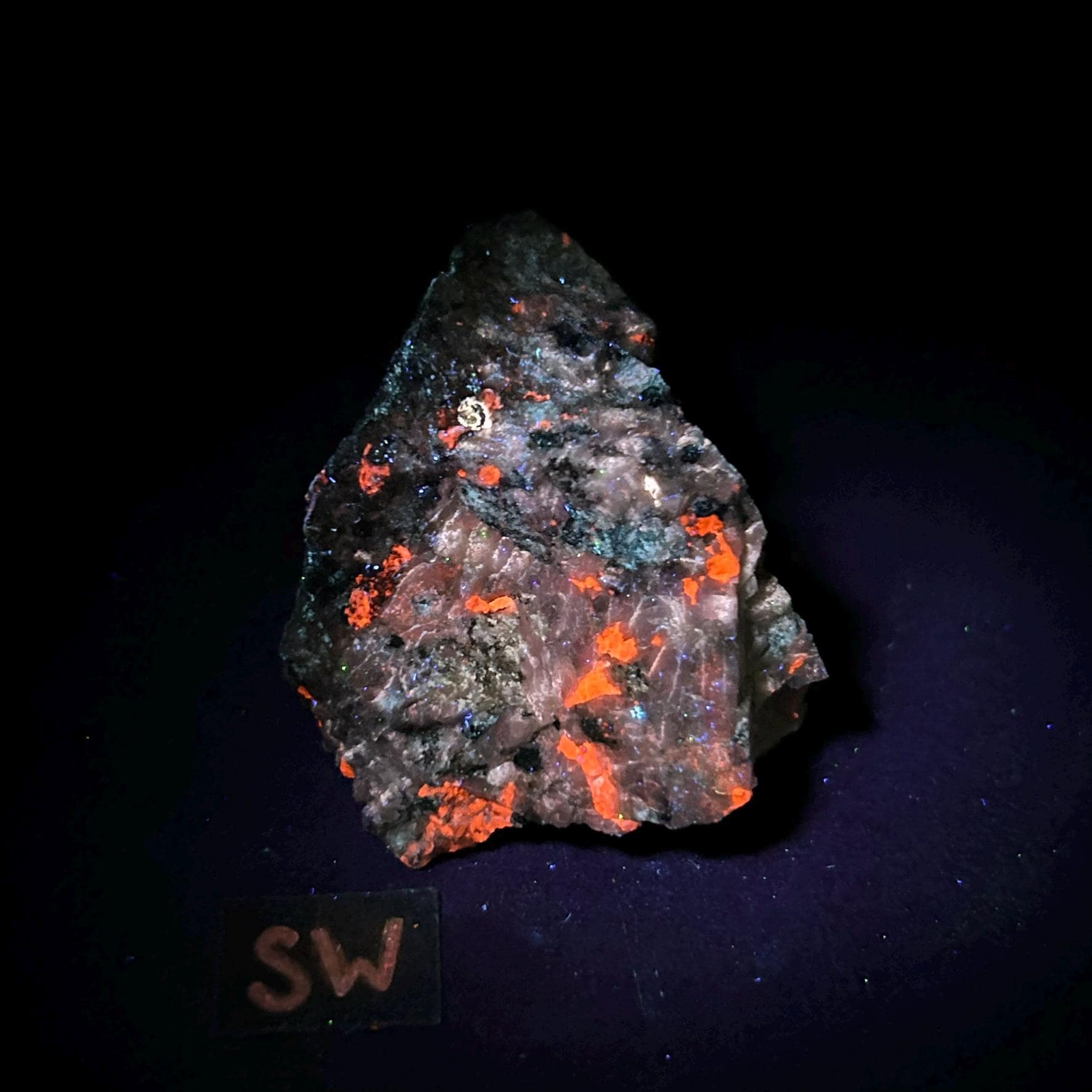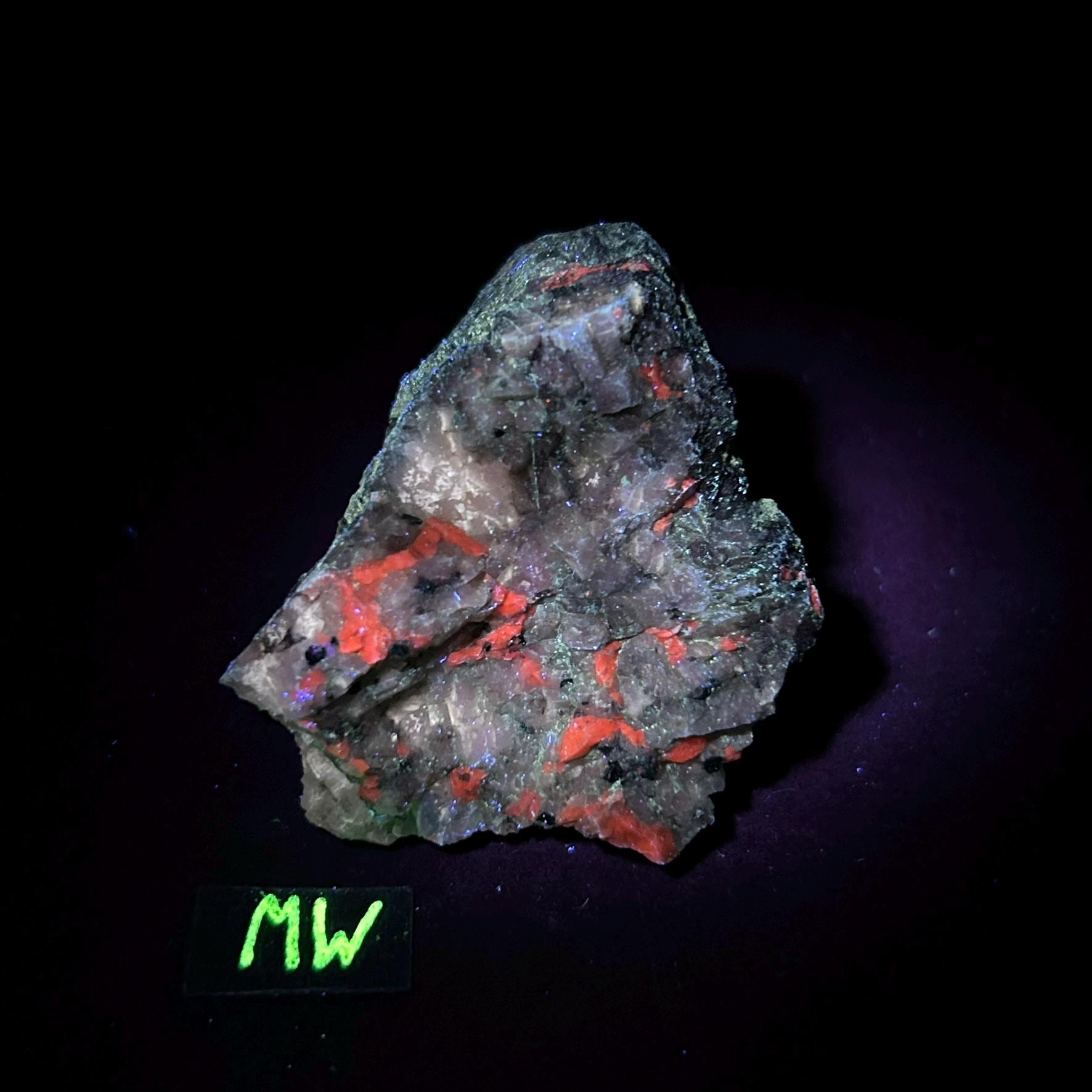 It fluoresces pale white and orange under a Shortwave (SW 254nm) UV light, or a Midwave (MW 310nm) UV light, and less bright under a longwave (LW 365nm) uv light.