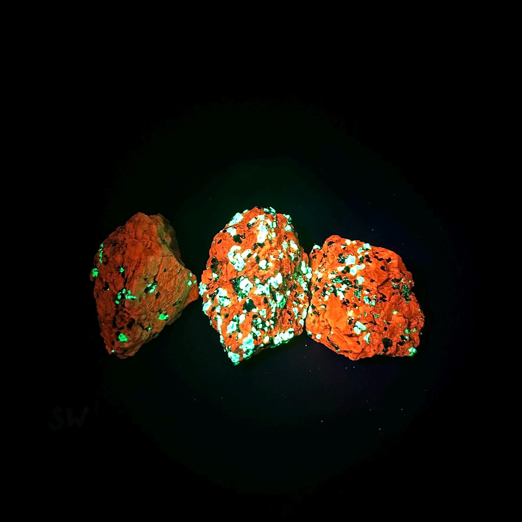 If your UV light isn’t as strong as the ones we used for photography, the fluorescence may appear dimmer or slightly different. Brightness and color intensity depend on the wattage and quality of your UV light.