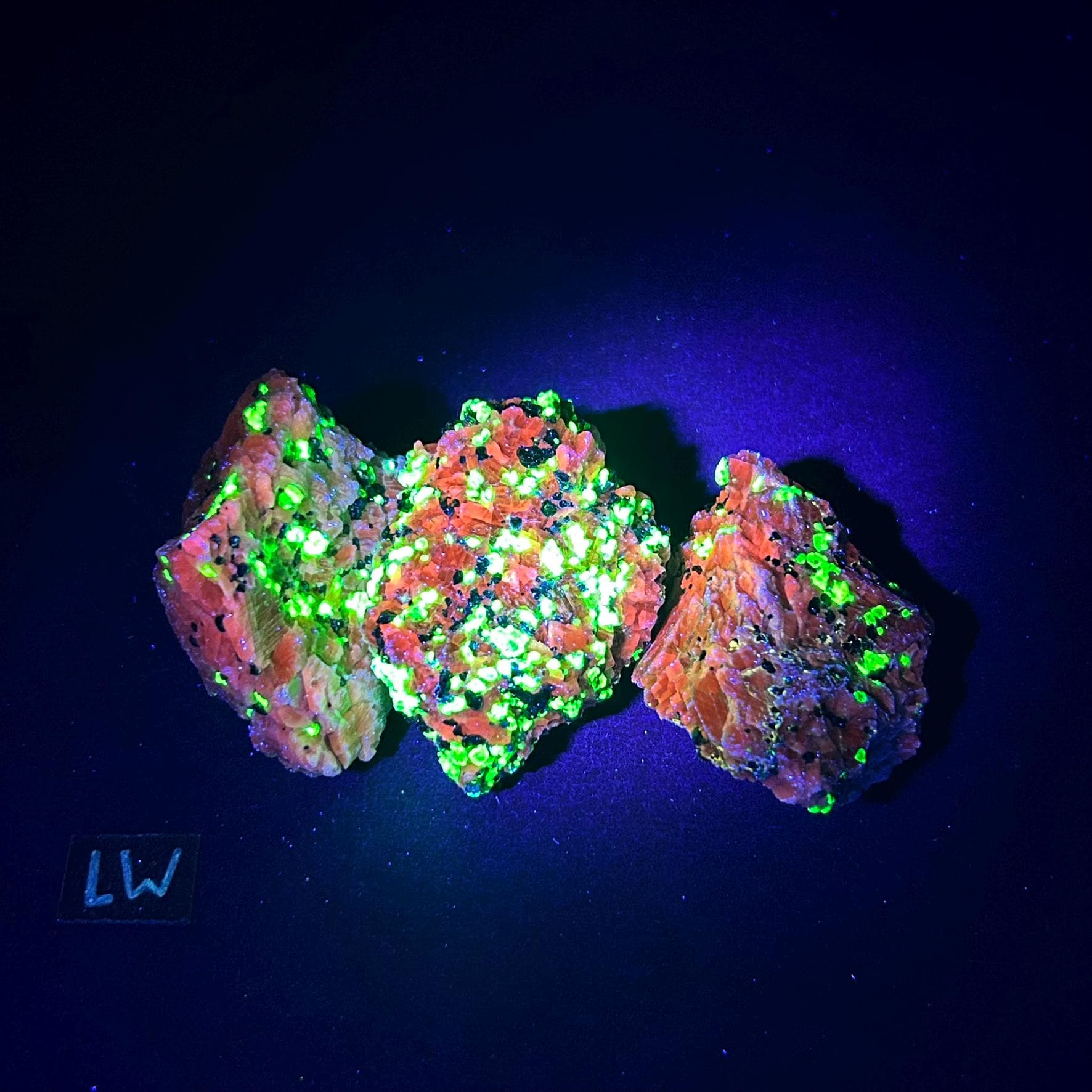 A true filtered shortwave uv light (sw 254nm) is necessary to see the best fluorescence in this specimen.
