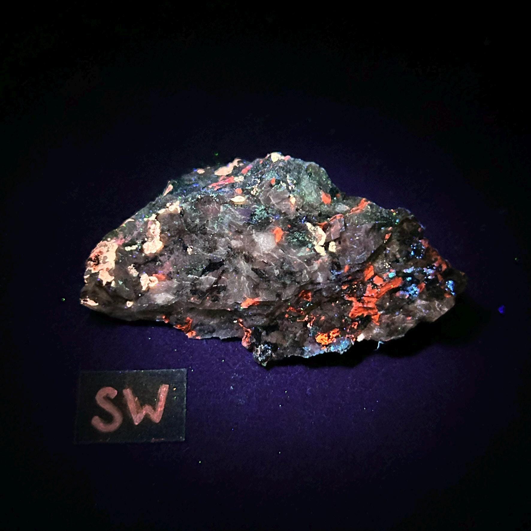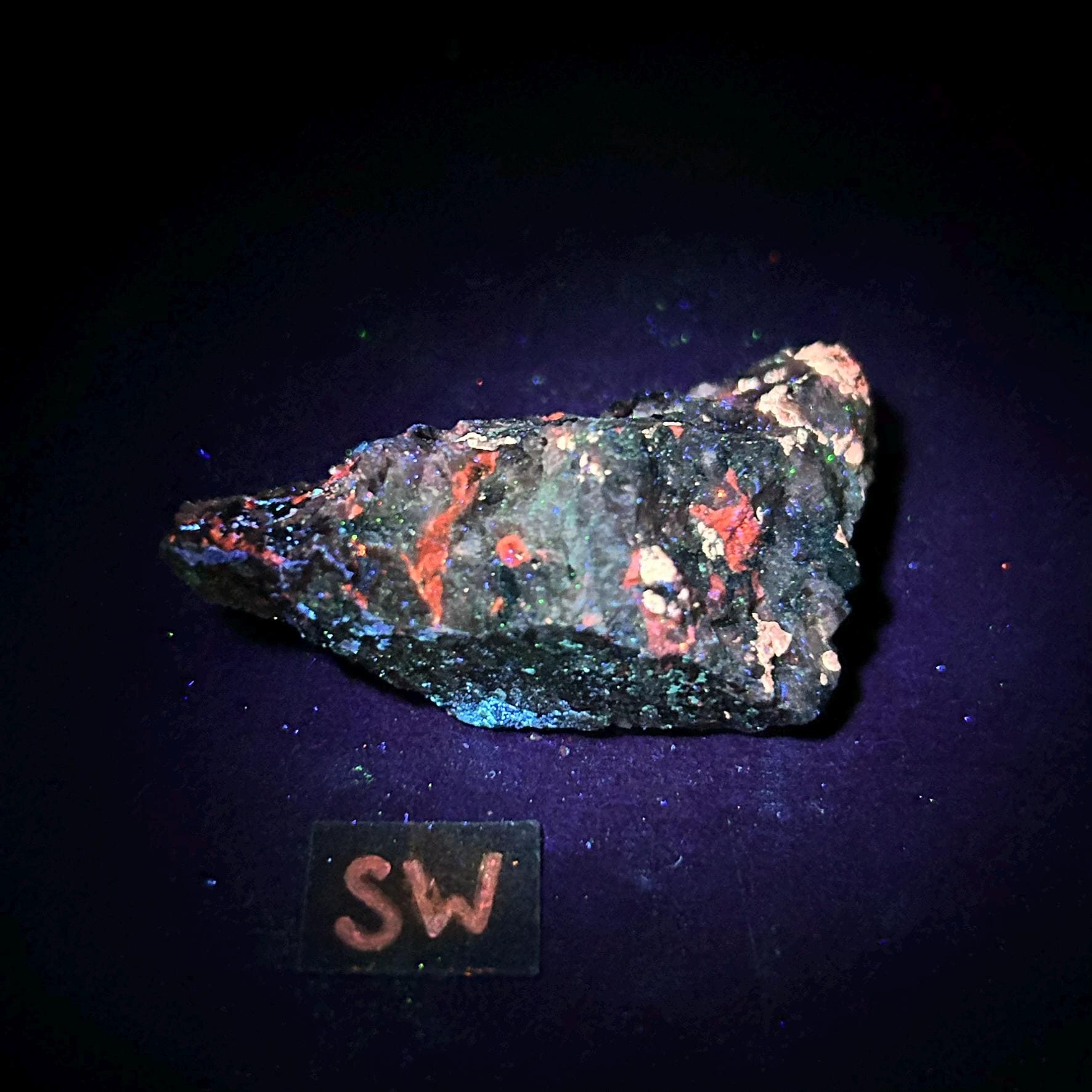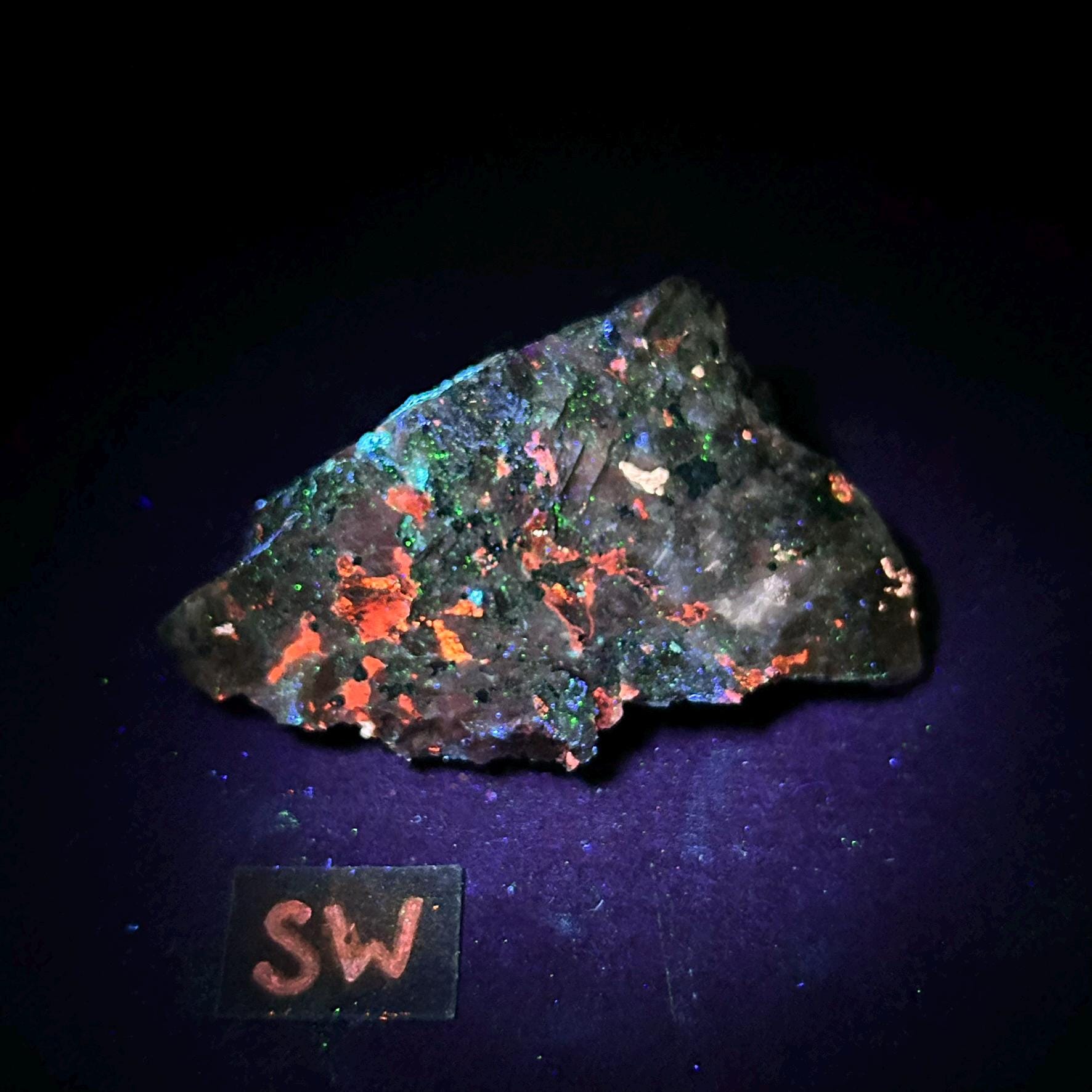 This specimen was photographed using a 36 watt shortwave 254nm ultraviolet lamp and an Engenious Designs midwave 310nm UV flashlight.