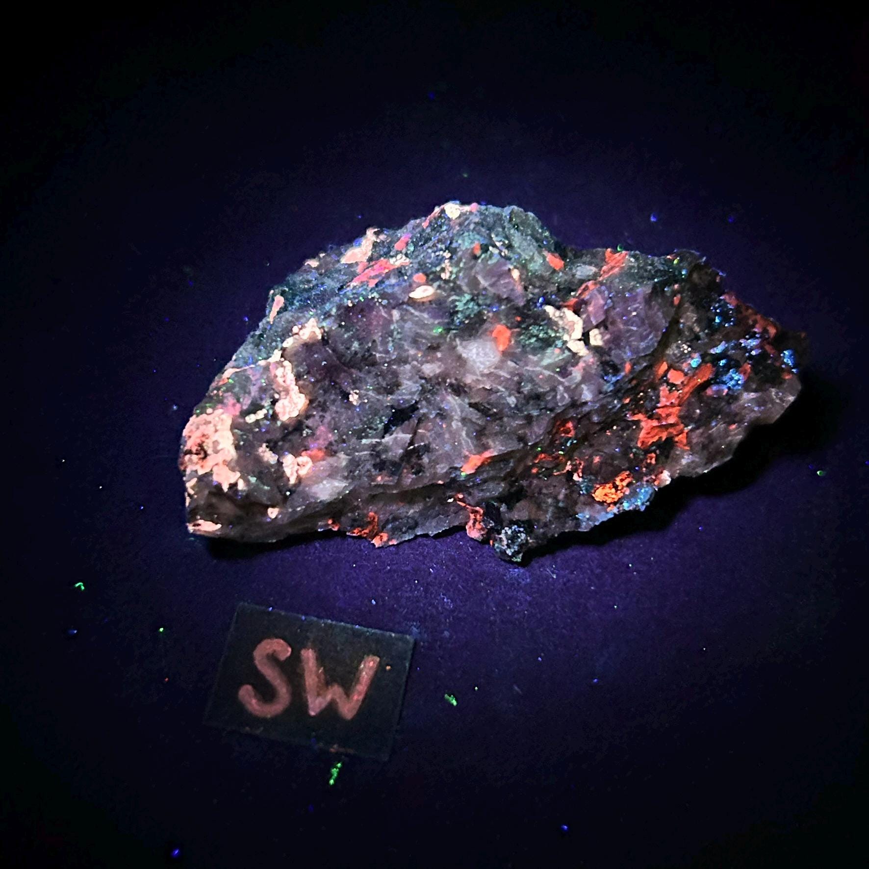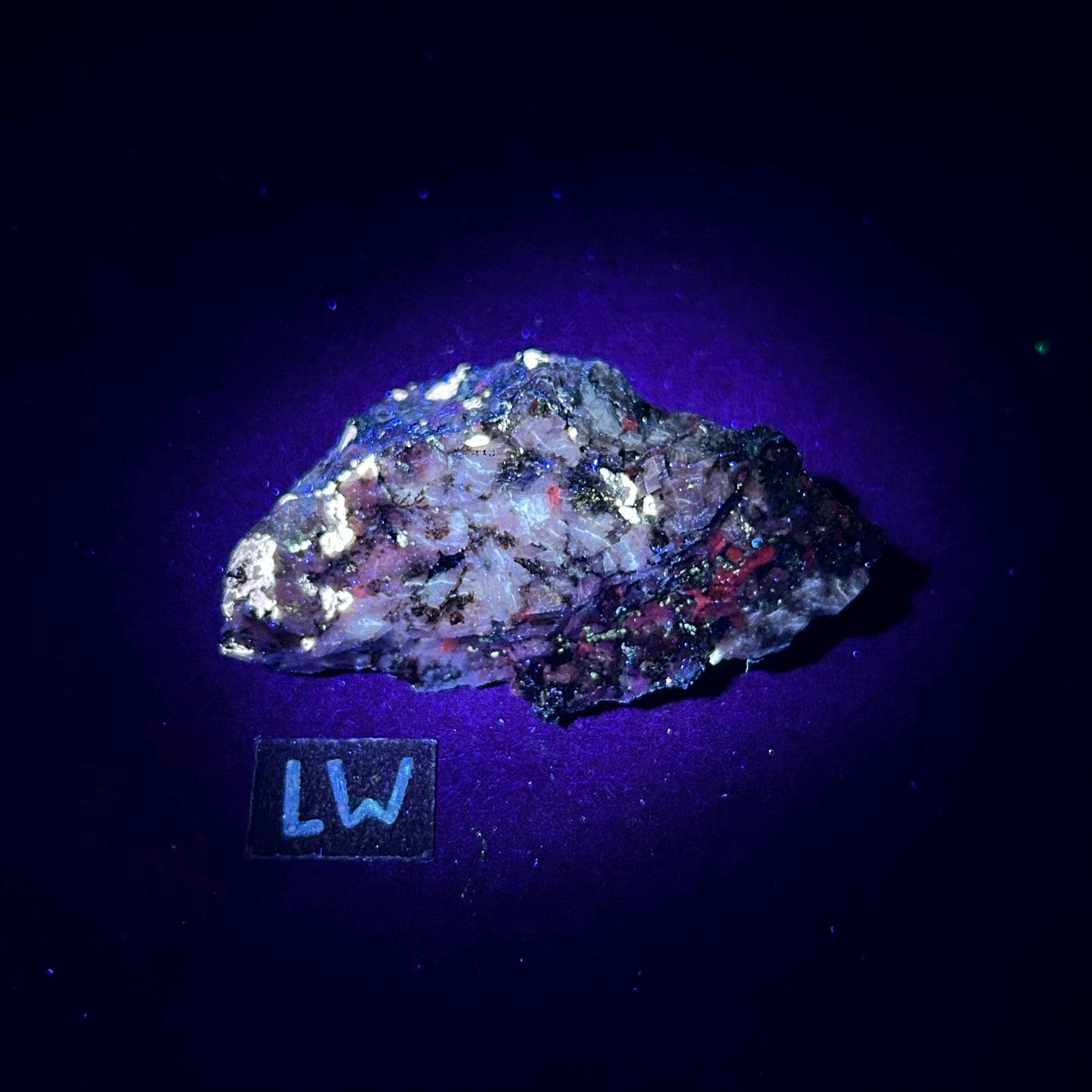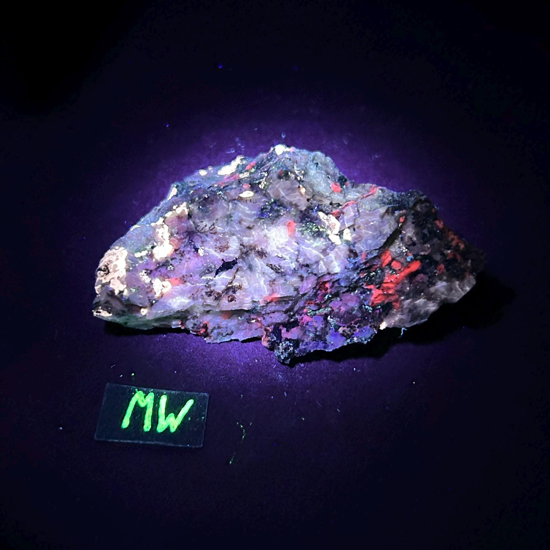 This specimen was photographed using a 36 watt shortwave 254nm ultraviolet lamp and an Engenious Designs midwave 310nm UV flashlight.