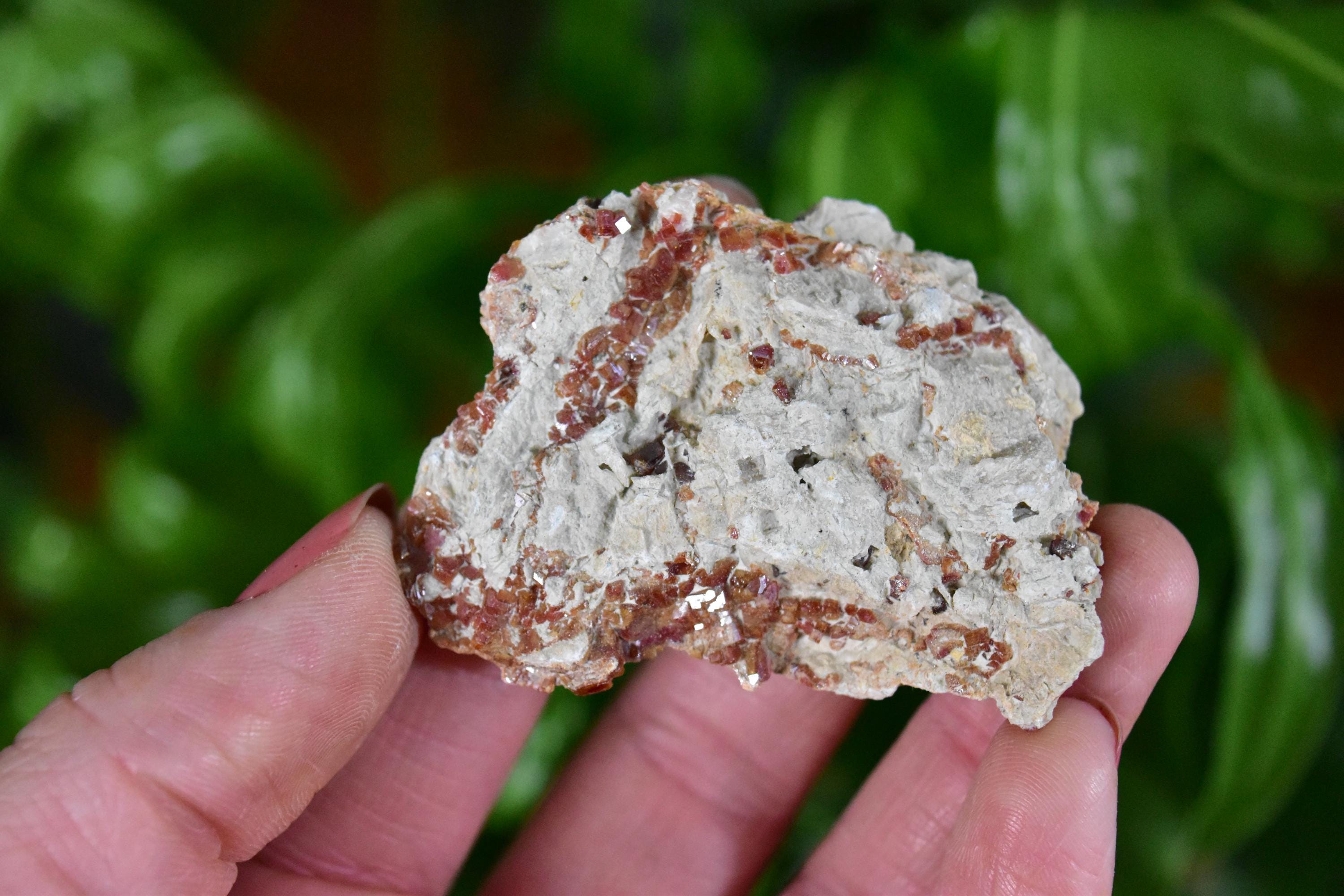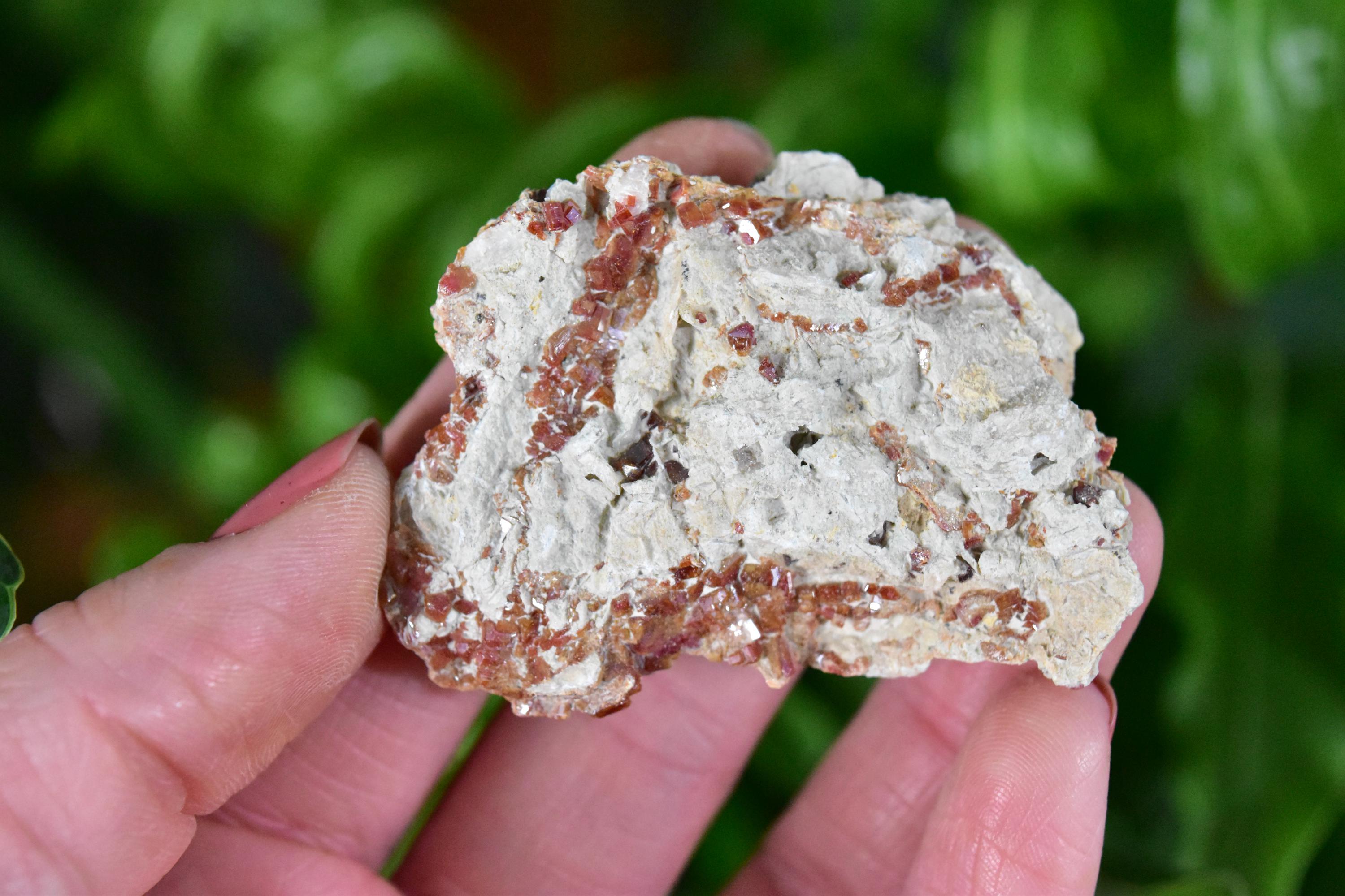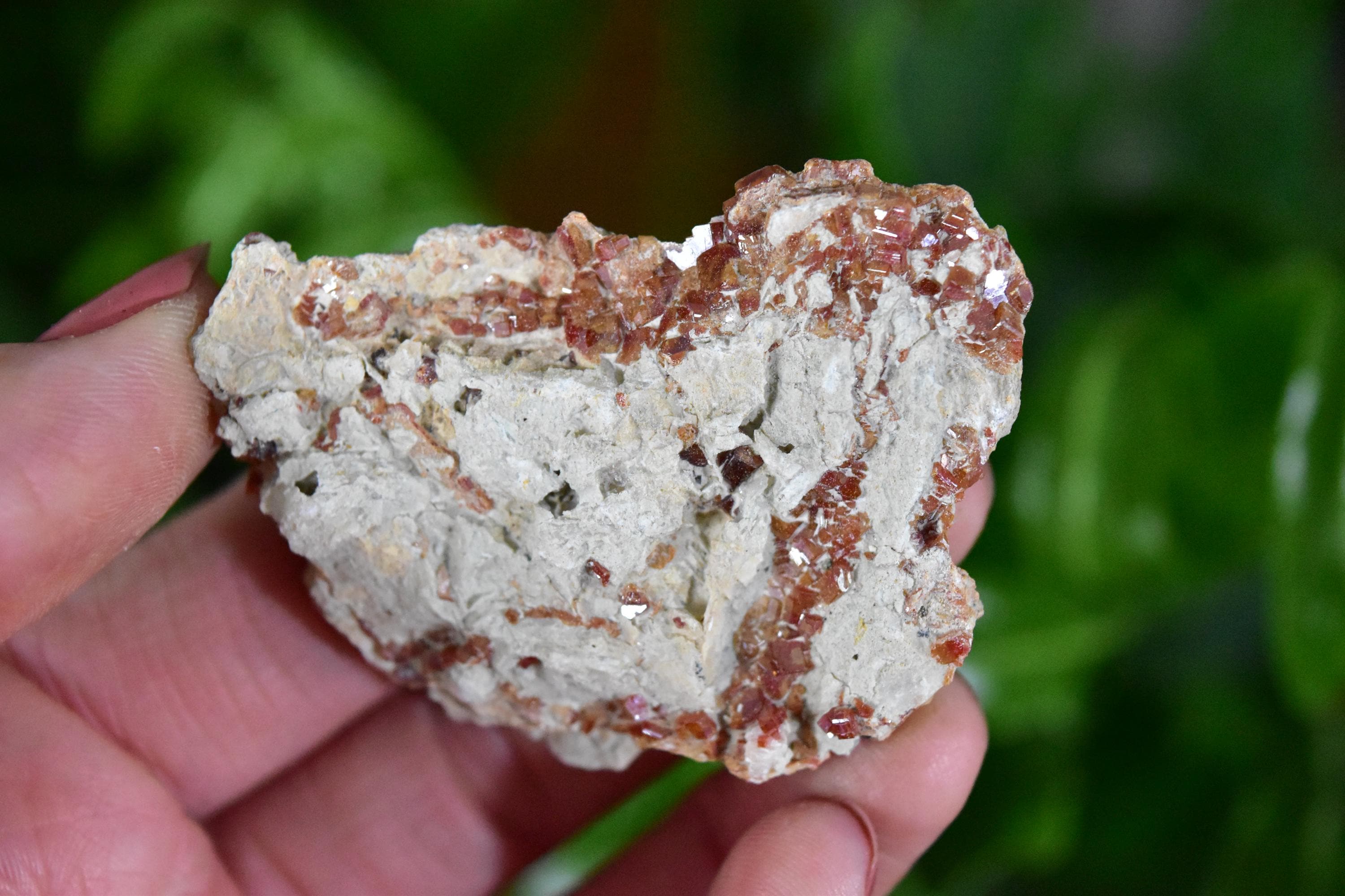 This barite crystal cluster has red vanadinite crystals and druzy quartz on the other.