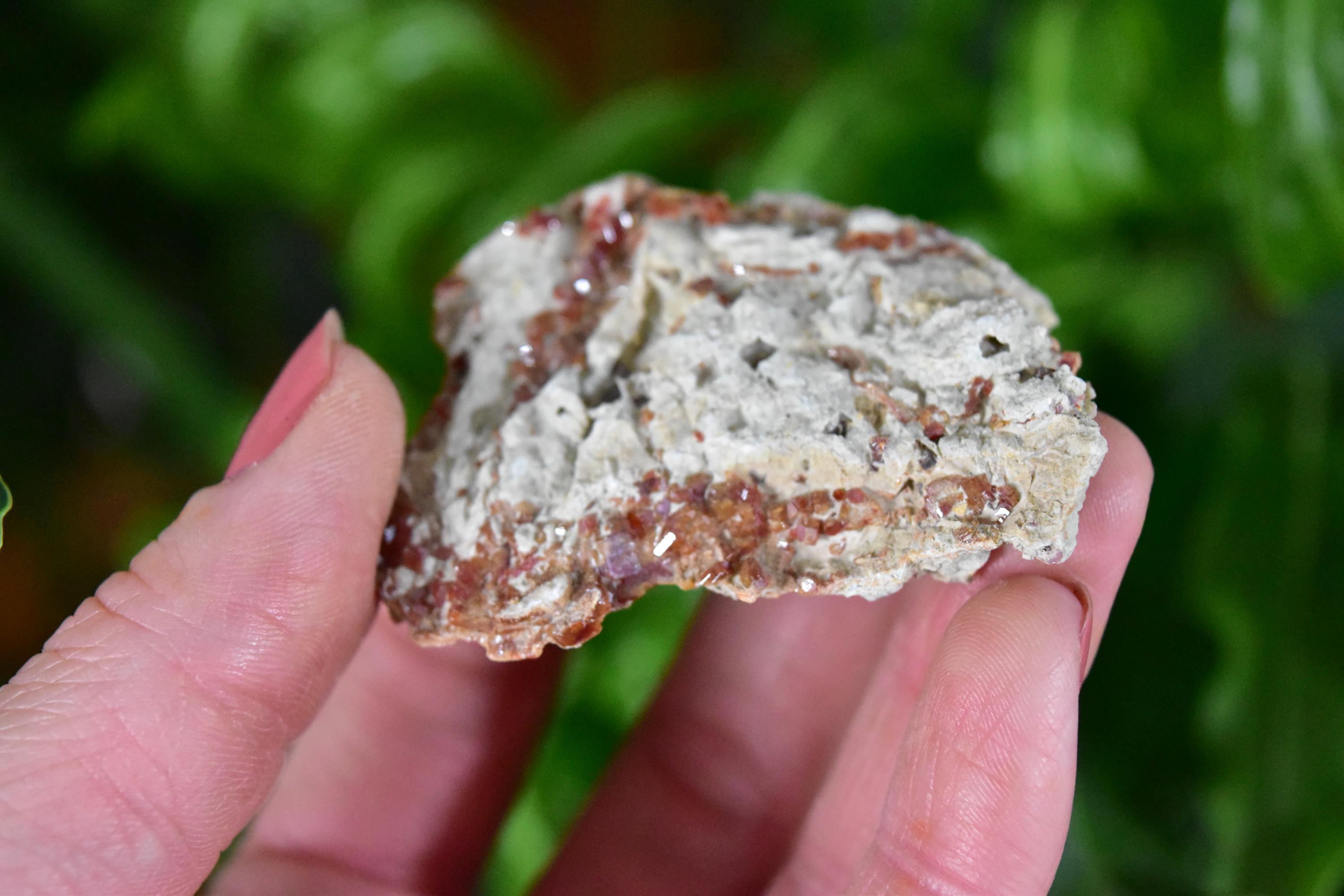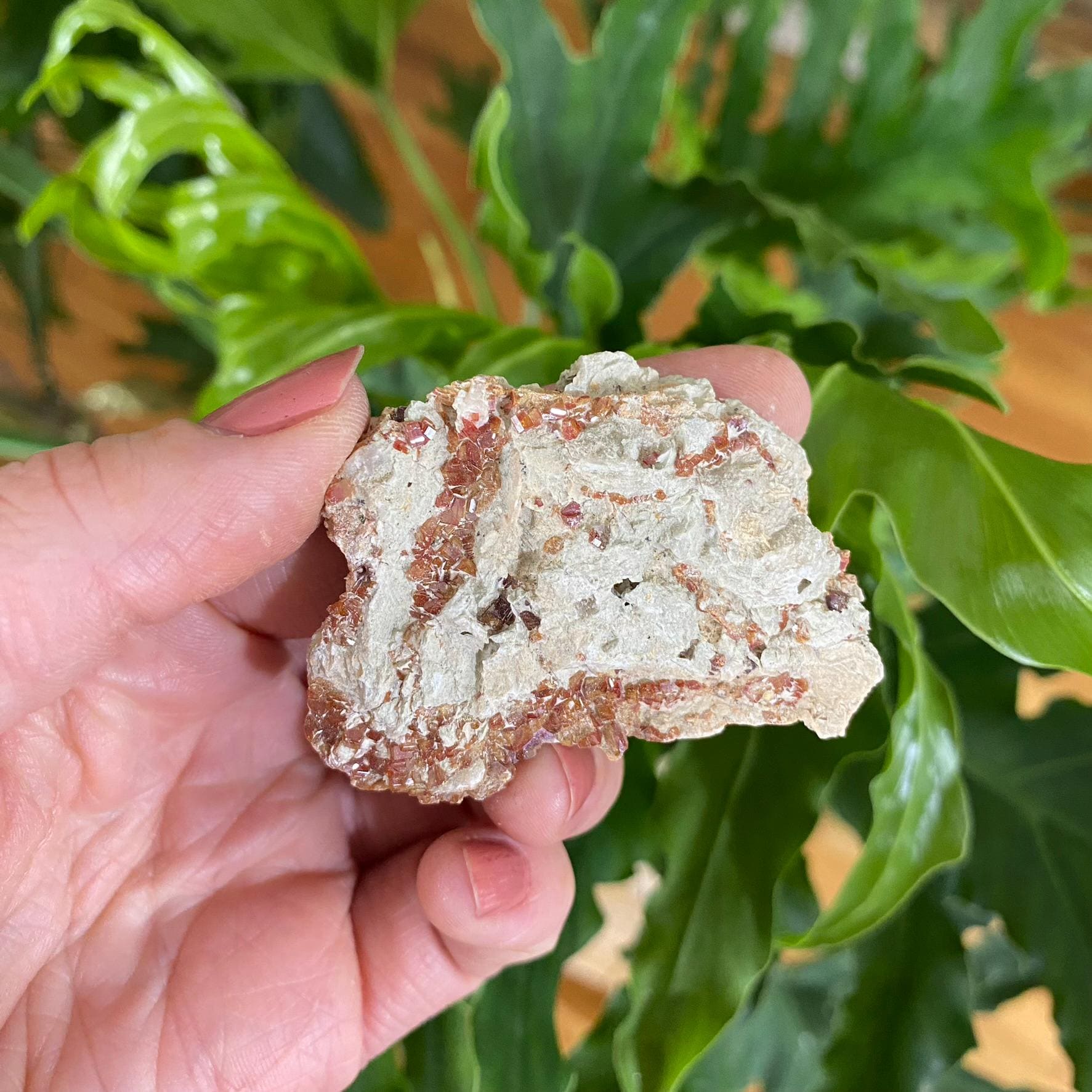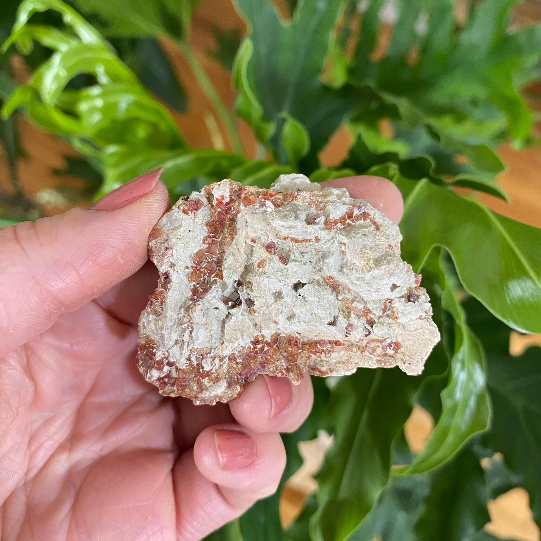This barite crystal cluster has red vanadinite crystals and druzy quartz on the other.