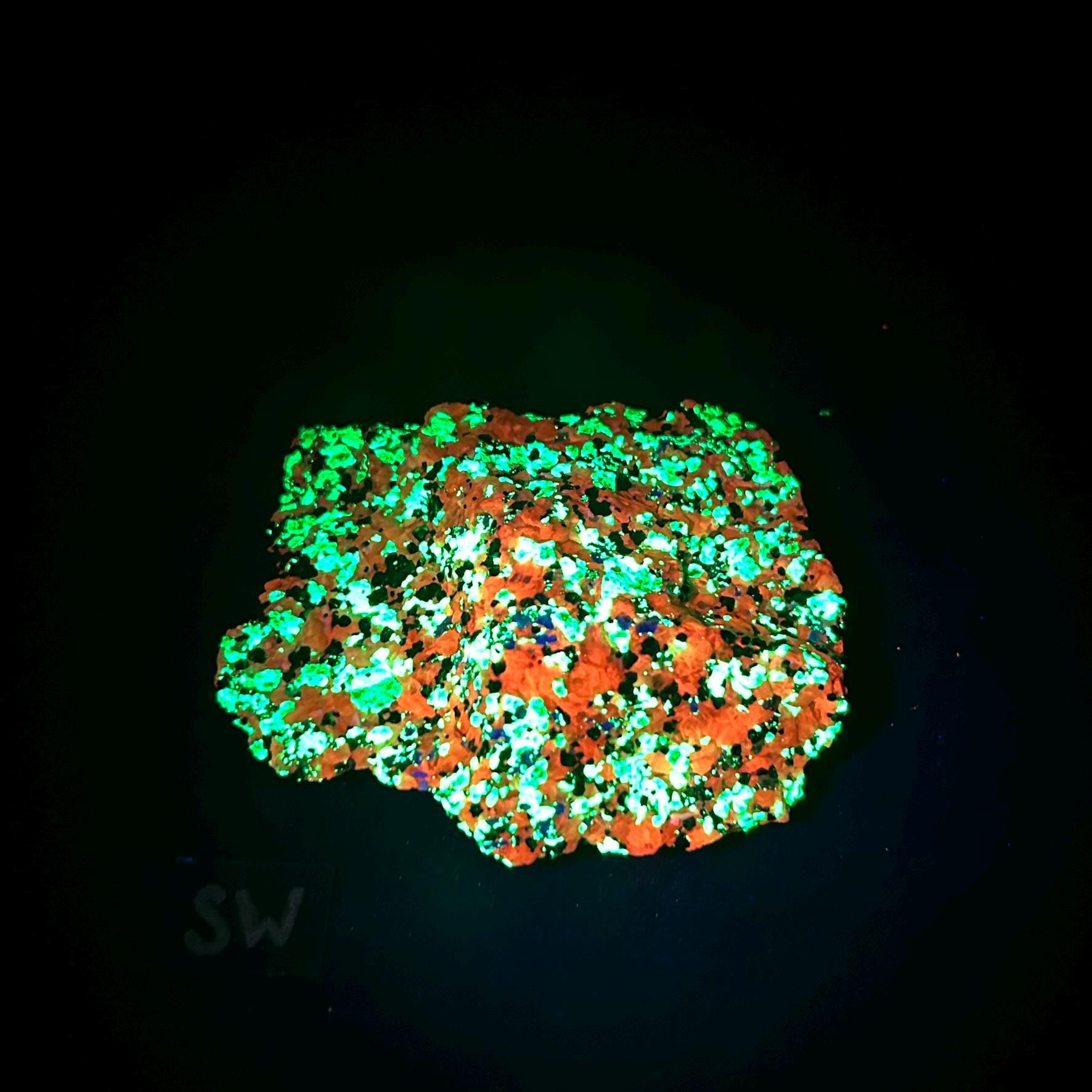 A true filtered shortwave uv light (sw 254nm) is necessary to see the best fluorescence in this specimen.