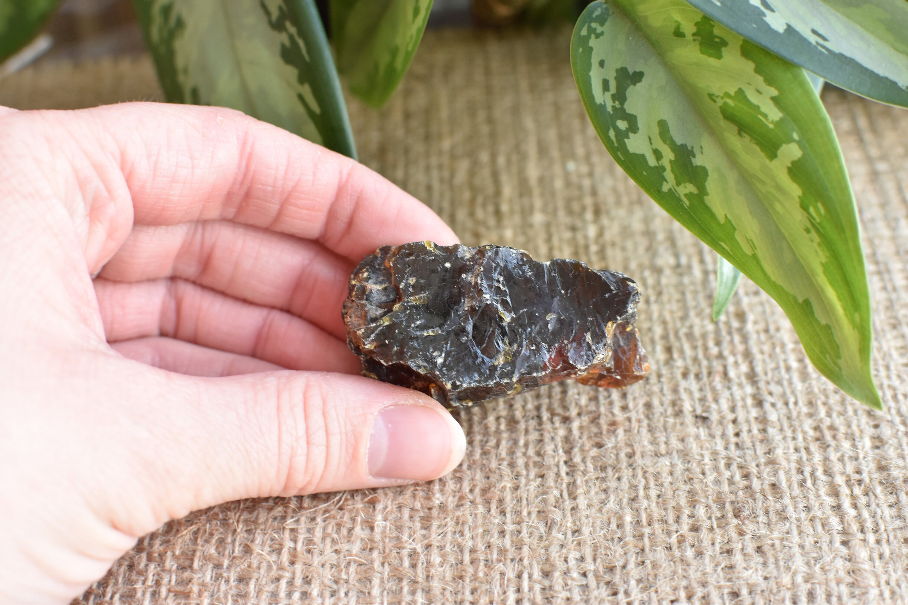 This beautiful Amber piece shows dark red, yellow, and orange translucence under normal light (when back lit). The colors change as you move the gemstone. It is also fluorescent and it shows a pale blue and yellow fluorescence under Longwave and Shortwave UV light (in Longwave it appears brighter).