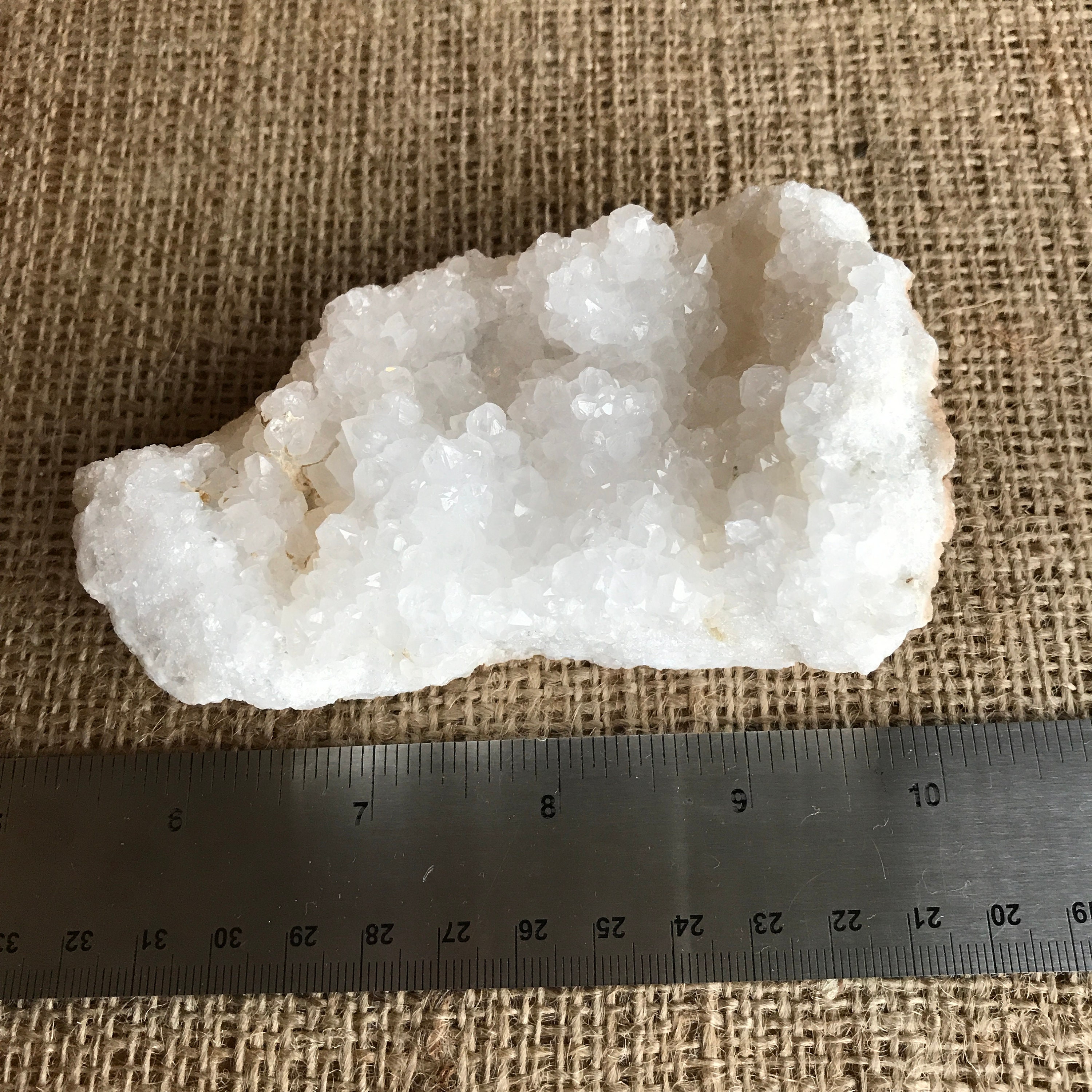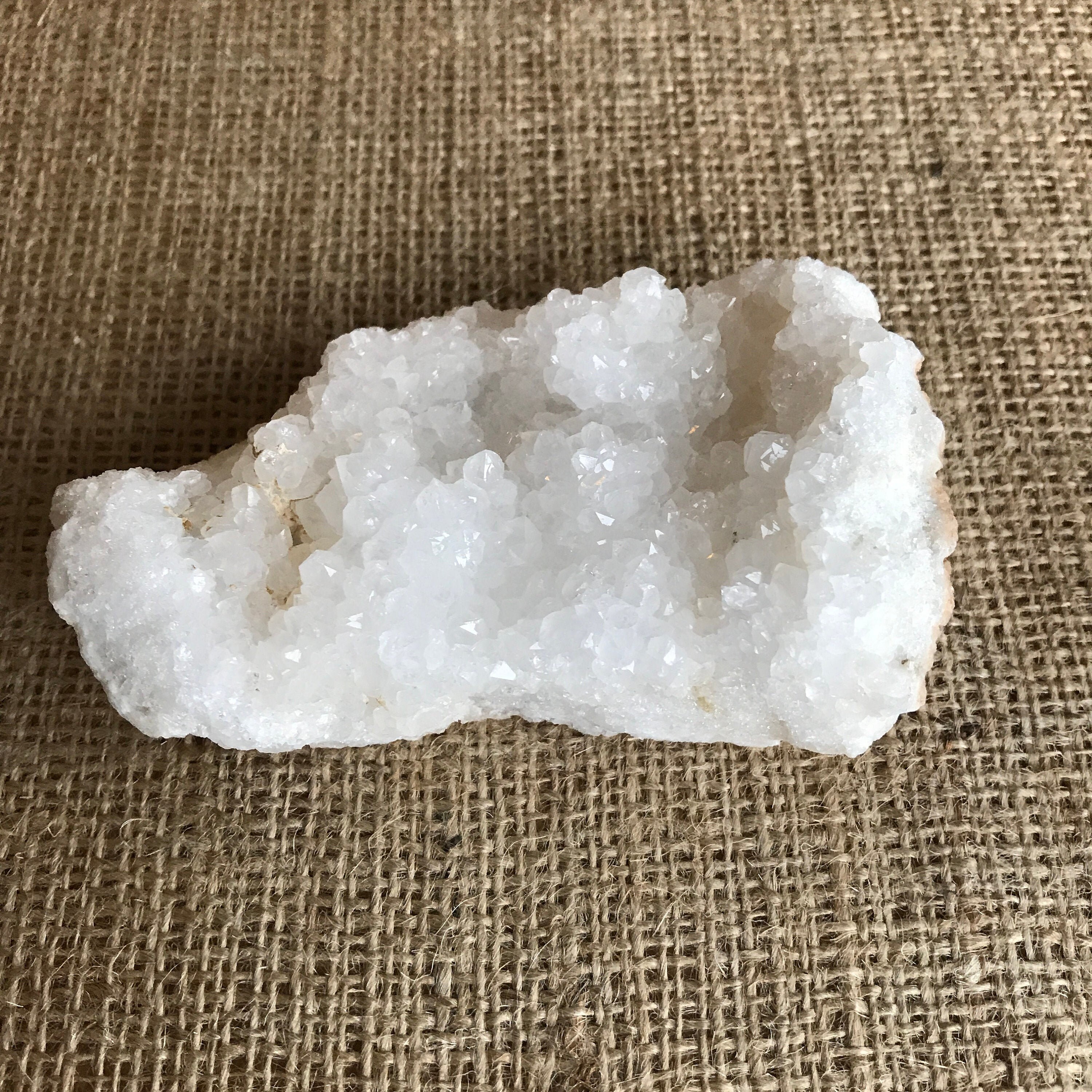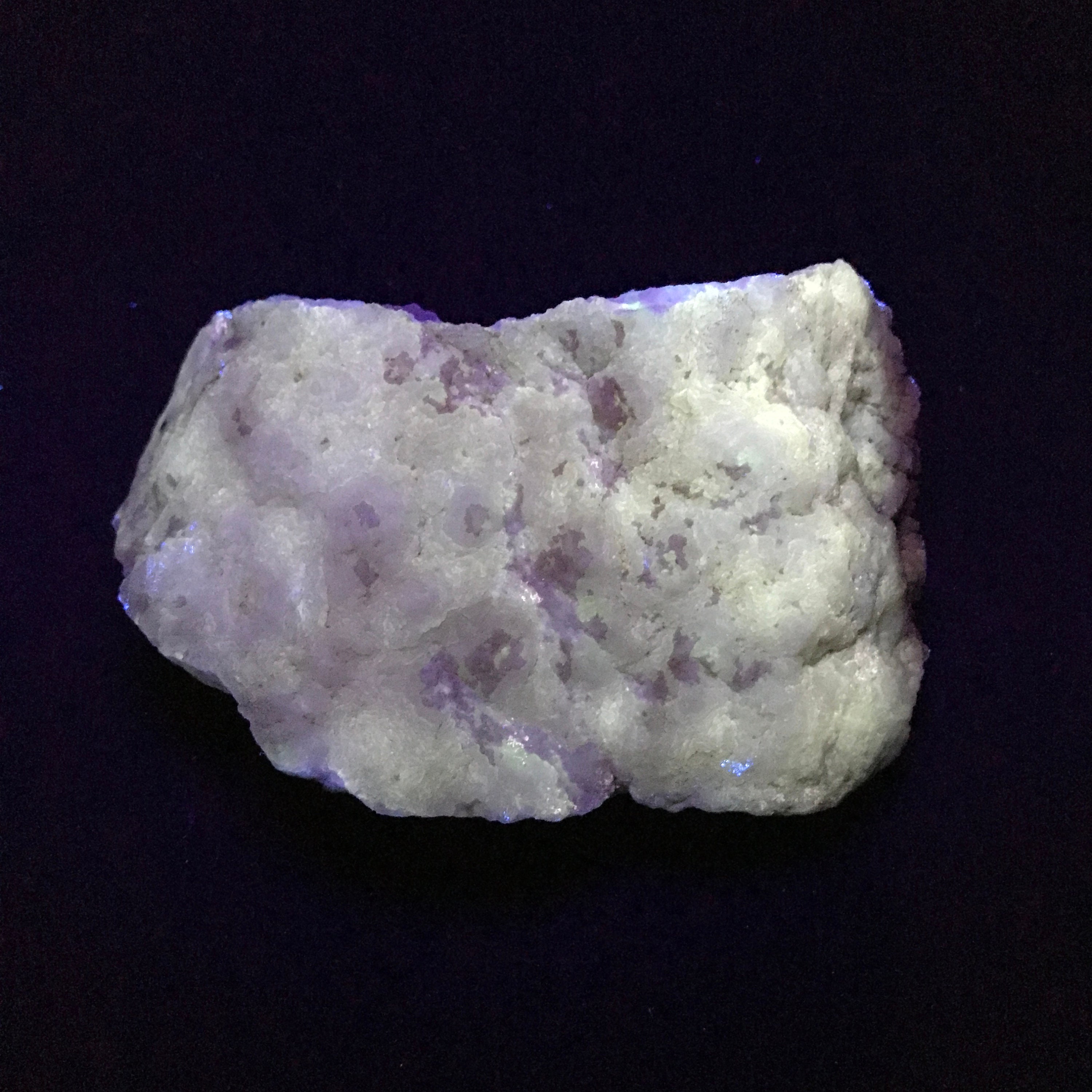 This quartz geode piece has really nice crystal formations and some parts fluoresce pale yellow (I believe its chalcedony) under shortwave and longwave UV light. Phosphorescent