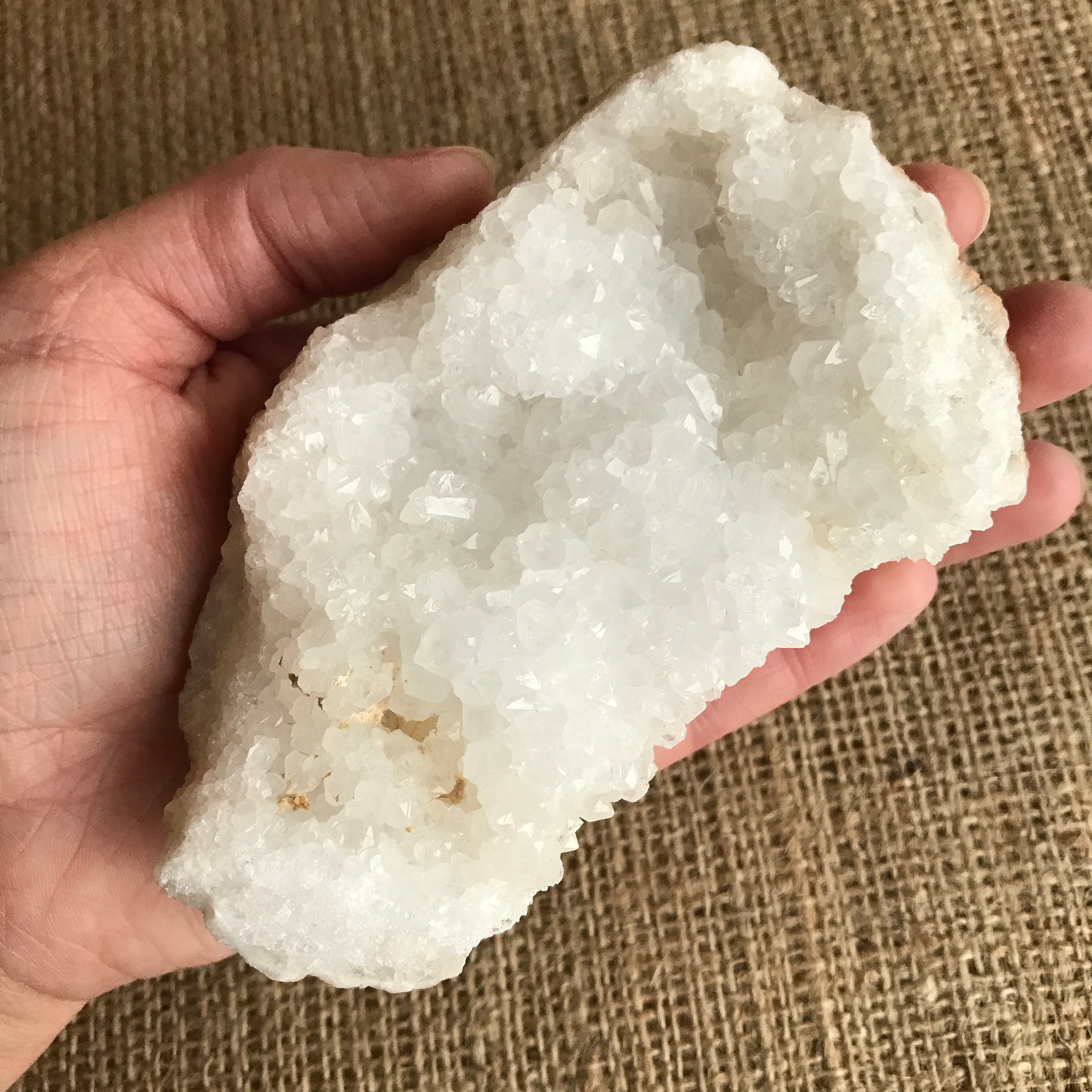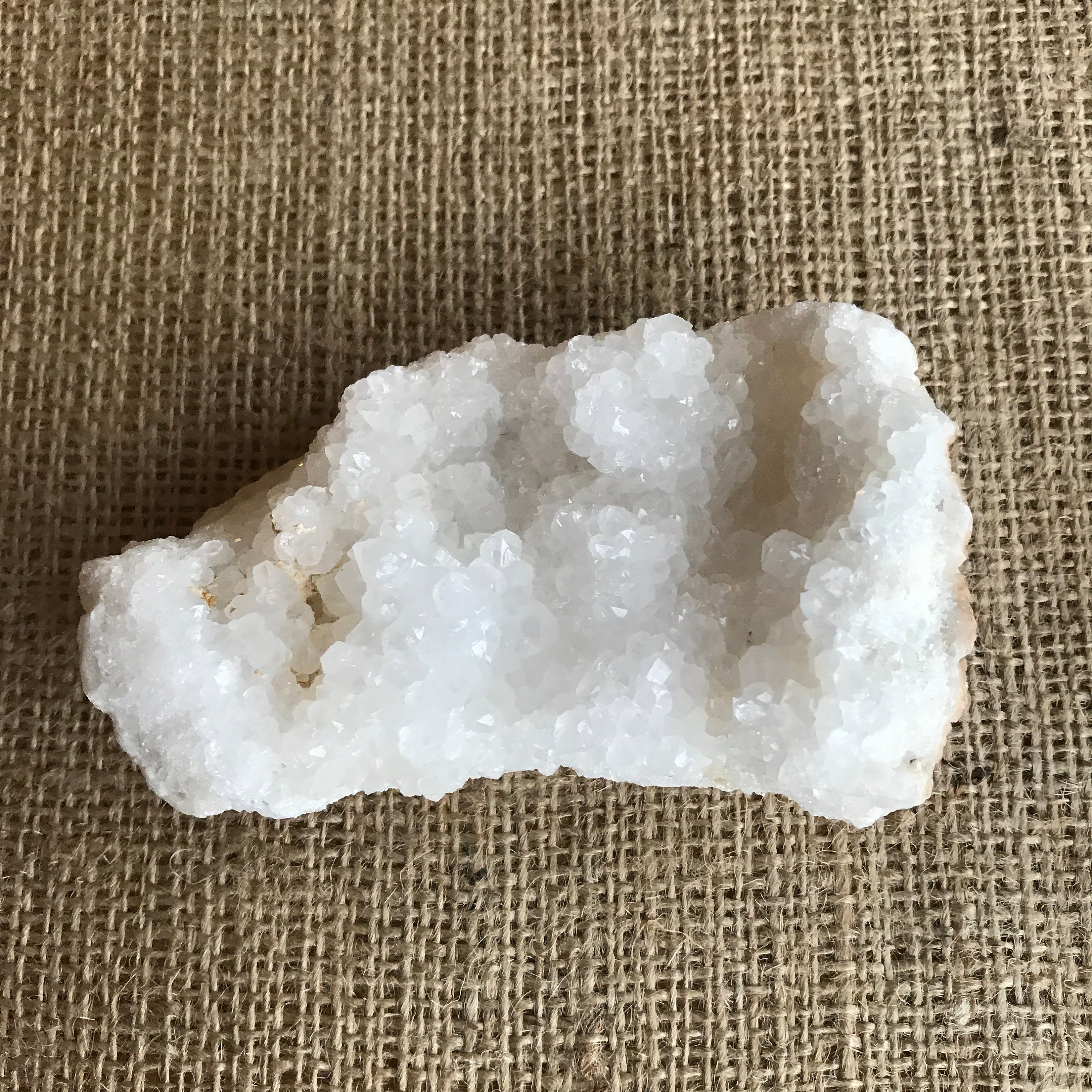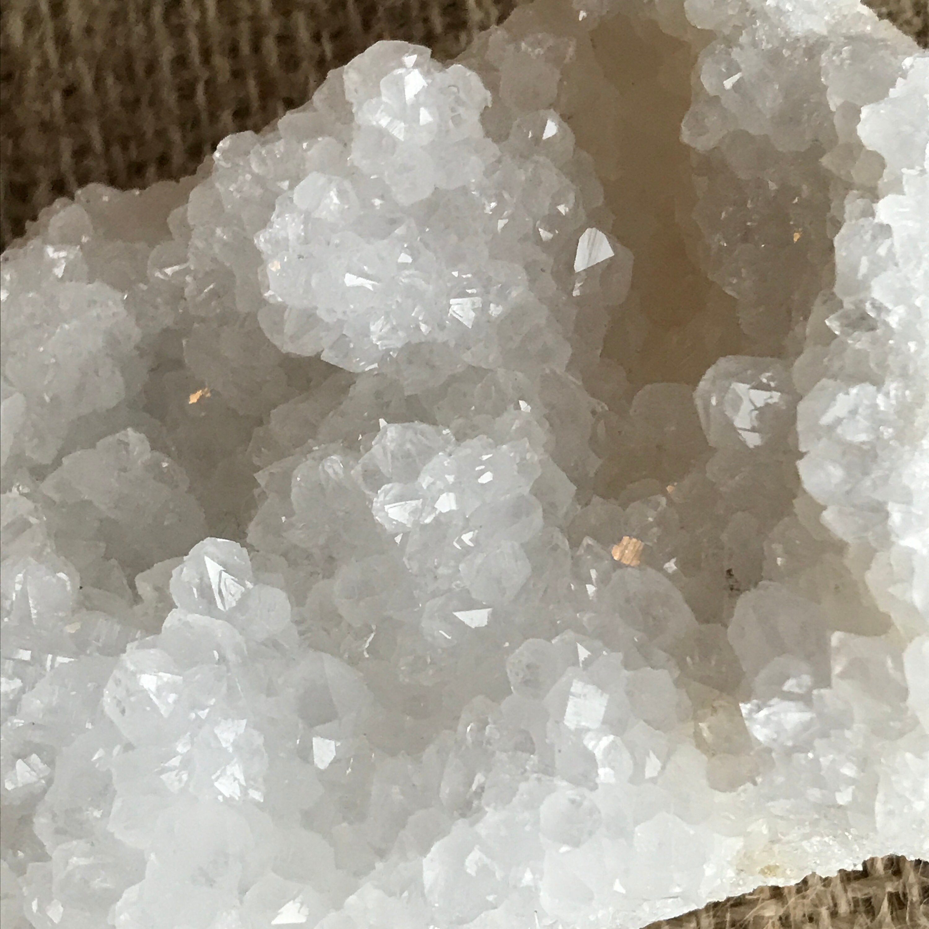 This quartz geode piece has really nice crystal formations and some parts fluoresce pale yellow (I believe its chalcedony) under shortwave and longwave UV light. Phosphorescent